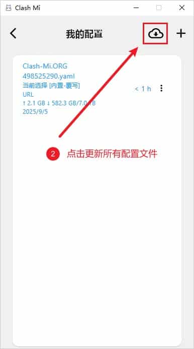 本地配置文件即通过本地文件拖拽导入,一般为无法通过远程订阅地址导入的情况下使用,可尝试在浏览器中下载配置文件后,点击界面我的配置旁边的➕图标,如下图所示。